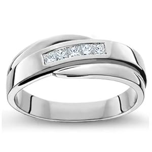 get hereFive princess-cut diamonds are channel-set in a comfort-fit style to make a very modern wedding ring. Total diamond weight is 1/3 ct.