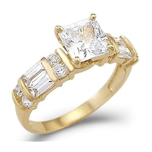 Yellow Gold Princess CZ Cubic Zirconia Engagement Ring Band